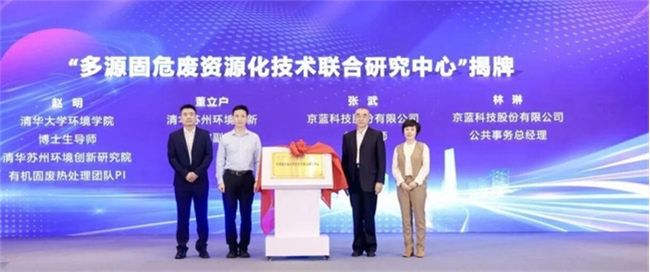 ——以硬核科技深化多源固危废资源化与低碳新赛道 近日,京蓝科技股份有限公司(以下简称“京蓝科技”)与清华苏州环境创新研究院(以下简称“清华苏州院”)正式签署共建“多源固危废资源化技术联合研究中心”的合作协议,并为联合研究中心揭牌。此次合作是2019年鑫联科技与清华苏州院共建的危废处理技术联合研究中心的深化和拓展,标志着京蓝科技在固危废资源化领域的产学研布局进入深化阶段。 强强联合,产学研协同再升级 本次合作旨在整合京蓝科技的产业应用能力与清华苏州院的技术研发优势,突破多项全球首创或领先技术,推动多源固危废资源化技术从实验室走向产业化复制。清华苏州院副院长董立户、有机固废热处理团队首席科学家赵明,京蓝科技董事长马黎阳、总工程师张武等共同出席揭牌仪式。