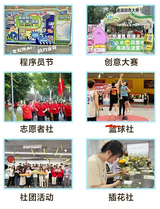 在高途工作的伙伴们年轻向上,团队氛围热烈活泼。周年庆、社团活动、各类节日活动、燃脂激励、吃瓜大赛等有趣活动应有尽有,每年都会有程序员节、创意大赛等活动,还组织有篮球社、插花社等各种兴趣类社团。在高途,开心工作,幸福生活。 成立11年来,高途集团坚持教育初心,步履不停,以热爱深耕教育,以“教育+AI”创新模式,结合“线上+线下”,累计服务学员9000余万人,遍布世界138个国家和地区。目前,高途线下校区覆盖城市20个,教育产品覆盖全年龄段。