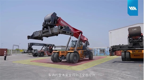 “威盛的AI技术为我们的本质化安全改进提供了重要支撑,”该钢厂安全负责人表示,“通过AI与设备的联动控制,我们实现了对危险能量的精准管控,大幅降低了安全事故风险。” 四、吊车安全:全景环视+夜间侦测 在某沿海港口集团,正面吊在日夜作业中面临着巨大的盲区安全隐患。威盛电子为其进行了大型正面吊安全视觉管理的全面升级。